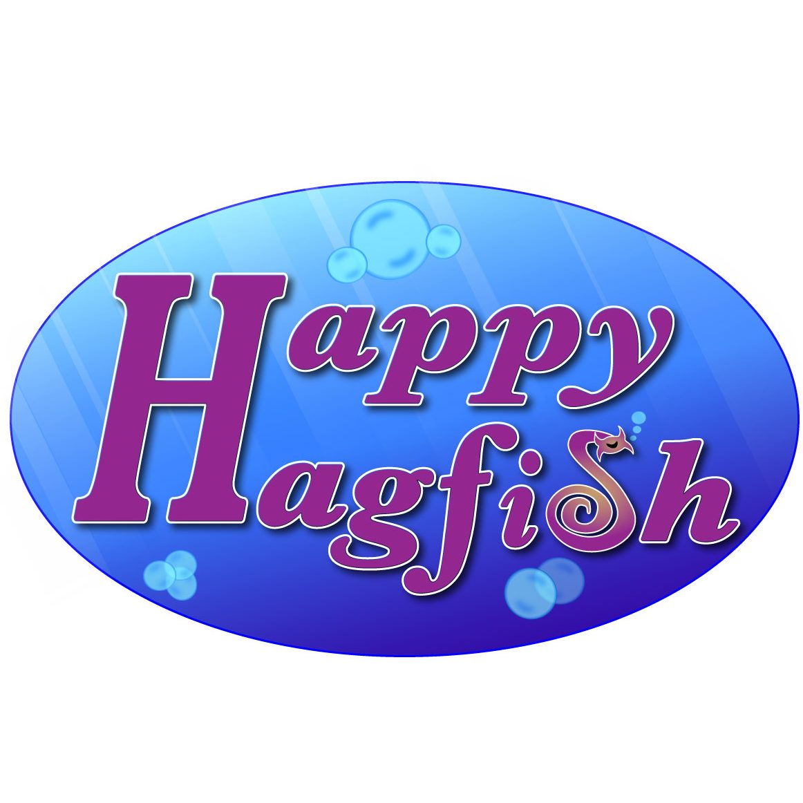 I made two significant changes to the shape of the logo. First, I created an ellipse and removed some of that blank background space. Second, I deleted the “H” from “Happy” and stretched out the “H” from “Hagfish” so it was large enough for both words. To make everything fit into the new ellipse, I had to do a little letter adjusting, but it all came together nicely, and the look is more cohesive.