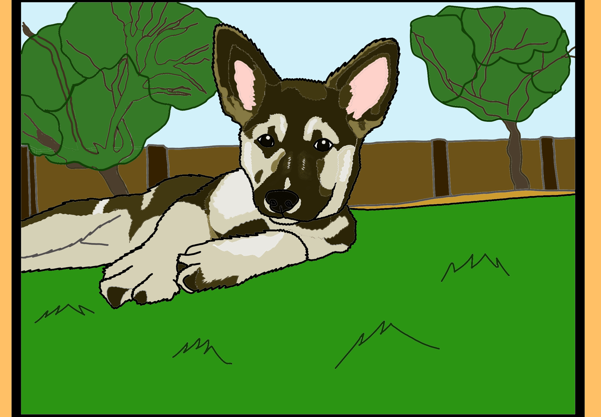 Okay, so some of these pieces are significantly better than others, and it’s pretty much because I learned about the layering function in the Sketchbook app. I now have a new hobby, which is making tons and tons of drawings/tracings of shows and movies I love, as well as renderings of my friends’ pets. I like to think I’m getting a little better each day.